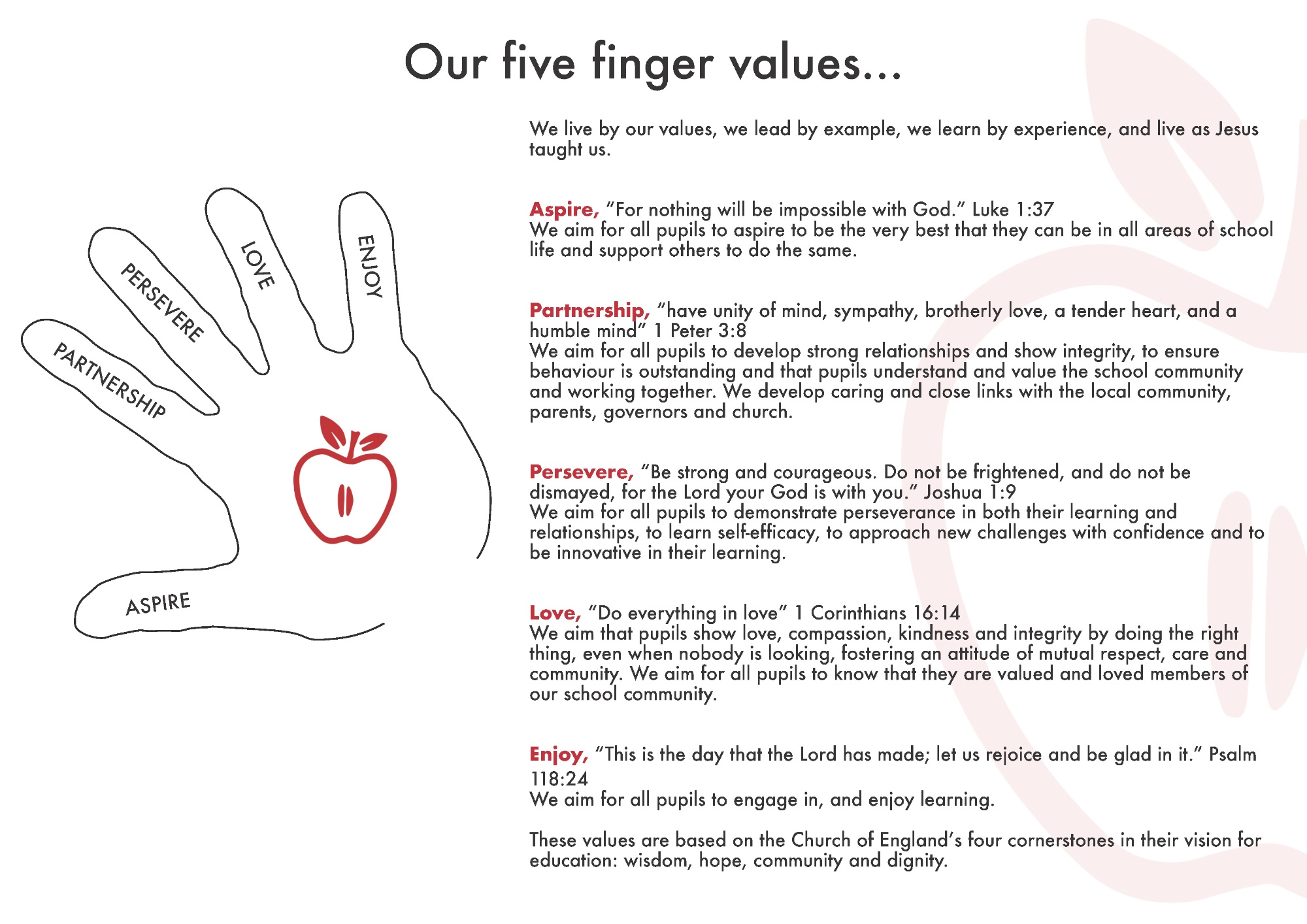 Aspire - Partnership - Persevere - Love - Enjoy